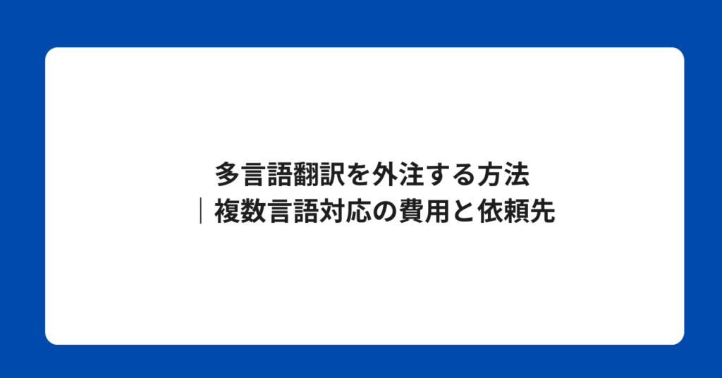 多言語翻訳の外注費用、まず相場から確認する 多言語翻訳の費用は言語の組み合わせによって大きく異なります。英語・中国語・韓国語などメジャー言語は比較的安く、希少... 翻訳代行