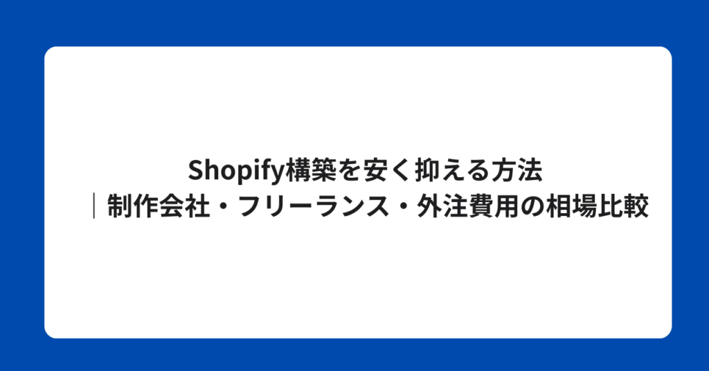 Shopify構築を安く抑える方法|制作会社・フリーランス・外注費用の相場比較