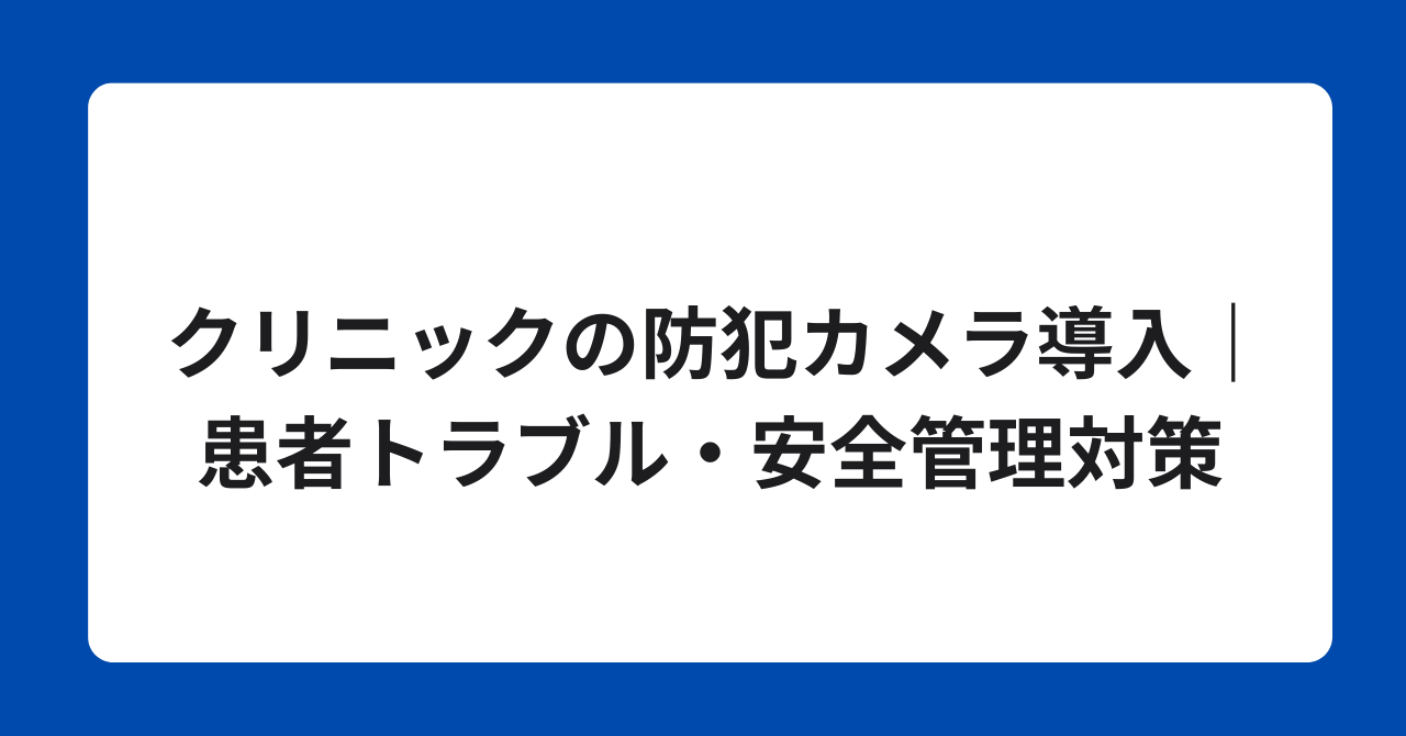 この記事では、クリニックにおける防犯カメラの合理性を整理します。