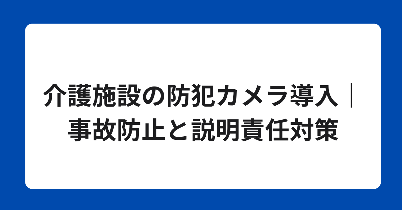 介護施設の防犯カメラ導入|事故防止と説明責任対策