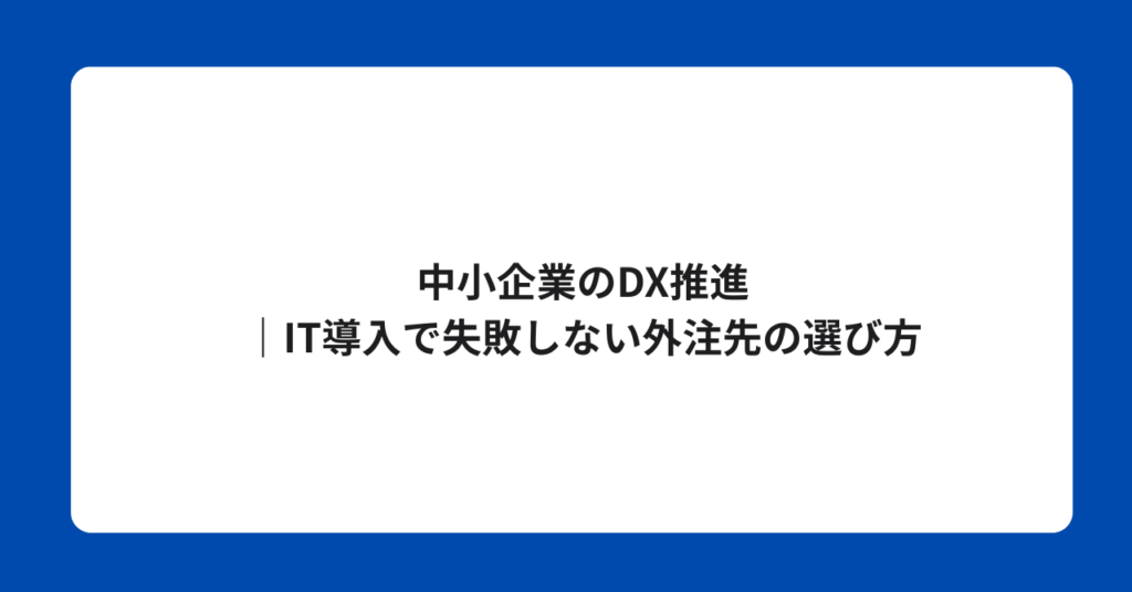 中小企業のDX推進|IT導入で失敗しない外注先の選び方 「DXを進めたいが、何から始めればよいかわからない」 「ITを導入したいが、自社にIT人材がいない」 「外注したい... -