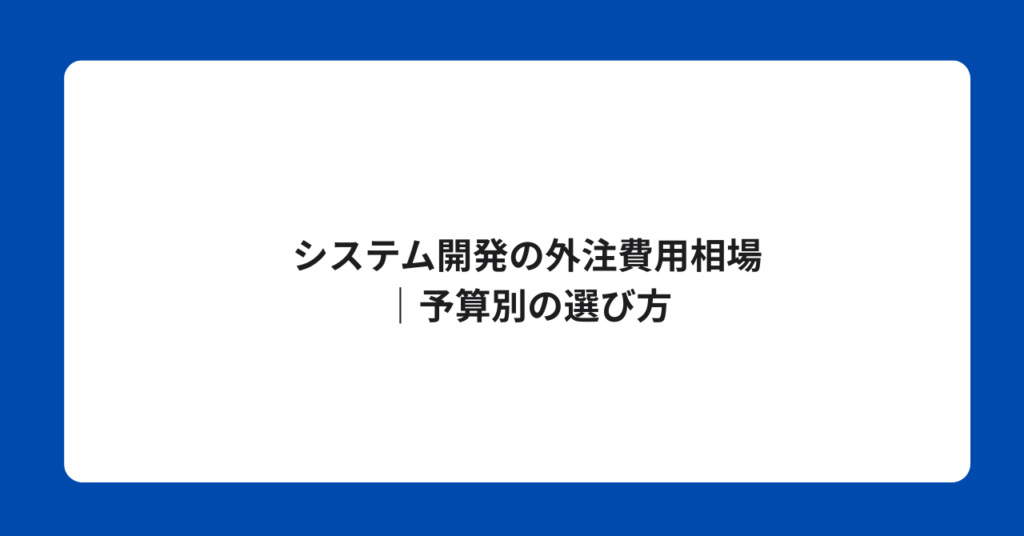 システム開発の外注費用相場|予算別の選び方 「システム開発を外注したいが、どれくらい費用がかかるかわからない」 システム開発の外注費用は、開発内容・規模・外注... -
