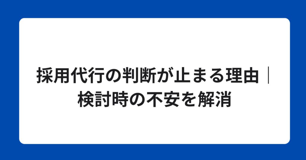 応募対応や求人媒体運用、面接調整などを任せることで、社内の負担を減らし、採用活動の質とスピードを高めることができます。一方で、採用代行は企業ごとに向き・不向きがあり、「どこに依頼すべきか」「そもそも外注すべきか」で判断に迷うケースも少なくありません。