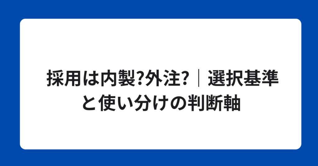 採用は内製?外注?|選択基準と使い分けの判断軸