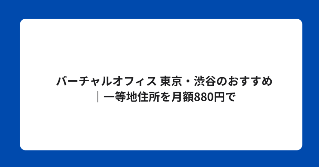 バーチャルオフィス 東京・渋谷のおすすめ|一等地住所を月額880円で