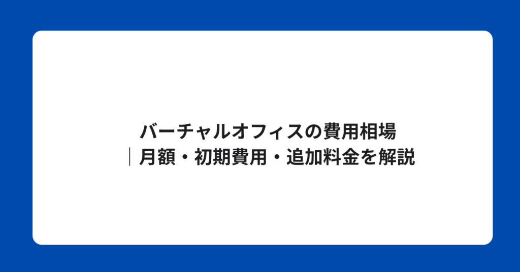 バーチャルオフィスの費用相場|月額・初期費用・追加料金を解説