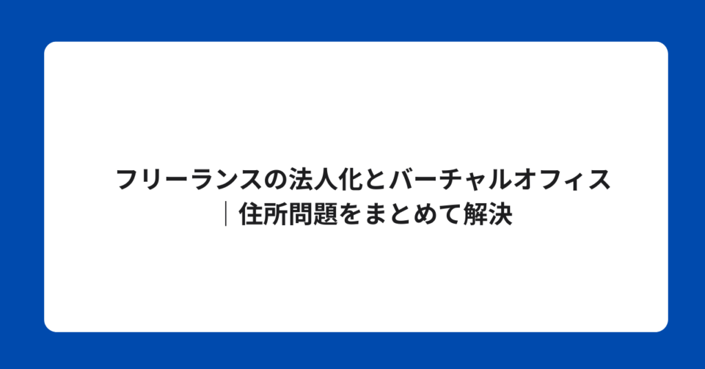 フリーランスの法人化とバーチャルオフィス|住所問題をまとめて解決 フリーランスが事業拡大・節税・取引先との信頼構築などを目的に法人化を検討する際、必ず直面する... -