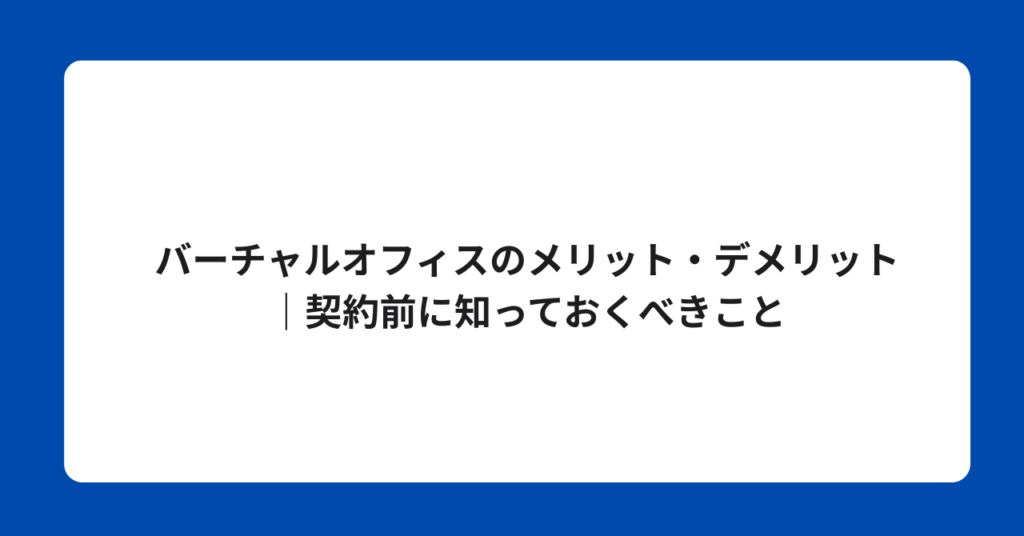 バーチャルオフィスのメリット・デメリット|契約前に知っておくべきこと バーチャルオフィスは低コストで多くのメリットがありますが、業種・用途によってはデメリット... -