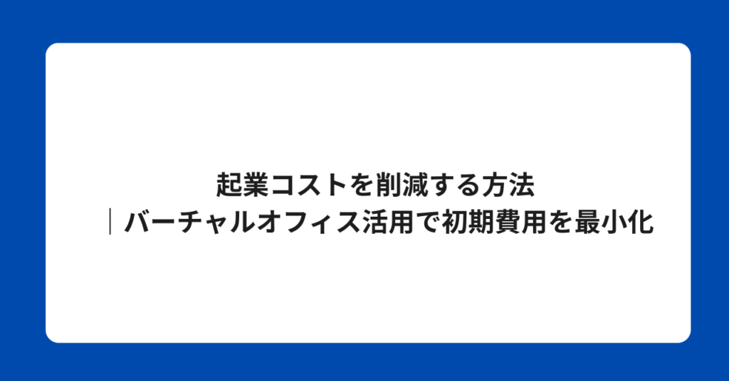 起業コストを削減する方法|バーチャルオフィス活用で初期費用を最小化 起業する際、多くの方が「どれくらいの費用がかかるか」を心配します。実際には、工夫次第で初期... -