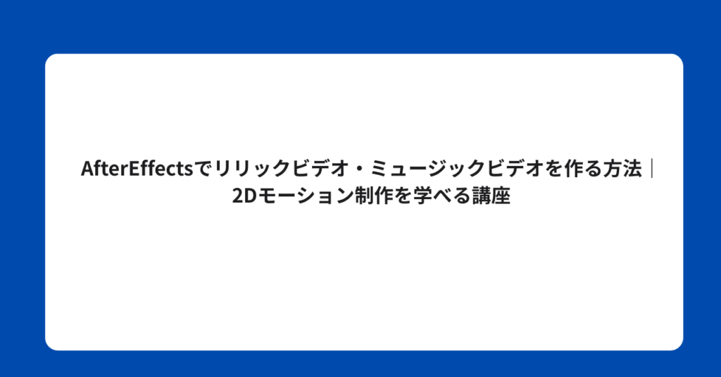 AfterEffectsでリリックビデオ・ミュージックビデオを作る方法|2Dモーション制作を学べる講座
