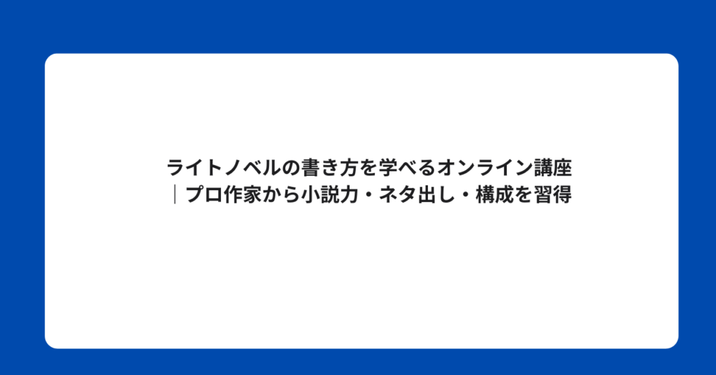 ライトノベルの書き方を学べるオンライン講座|プロ作家から小説力・ネタ出し・構成を習得