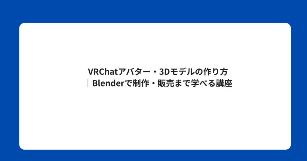 VRChatアバター・3Dモデルの作り方|Blenderで制作・販売まで学べる講座