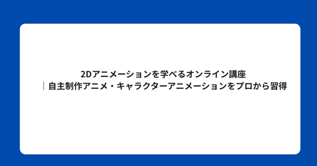 2Dアニメーションを学べるオンライン講座|自主制作アニメ・キャラクターアニメーションをプロから習得