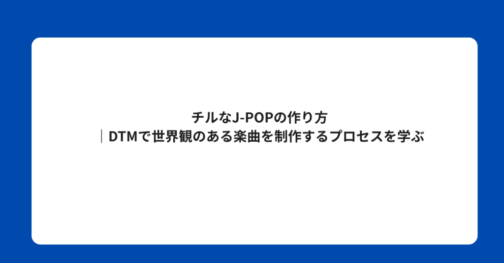 チルなJ-POPの作り方|DTMで世界観のある楽曲を制作するプロセスを学ぶ