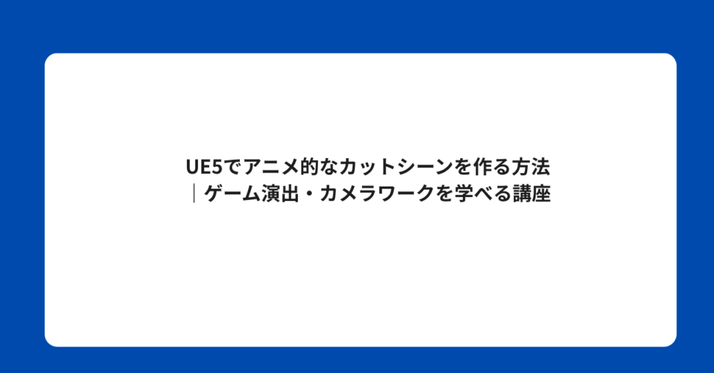 UE5でアニメ的なカットシーンを作る方法|ゲーム演出・カメラワークを学べる講座