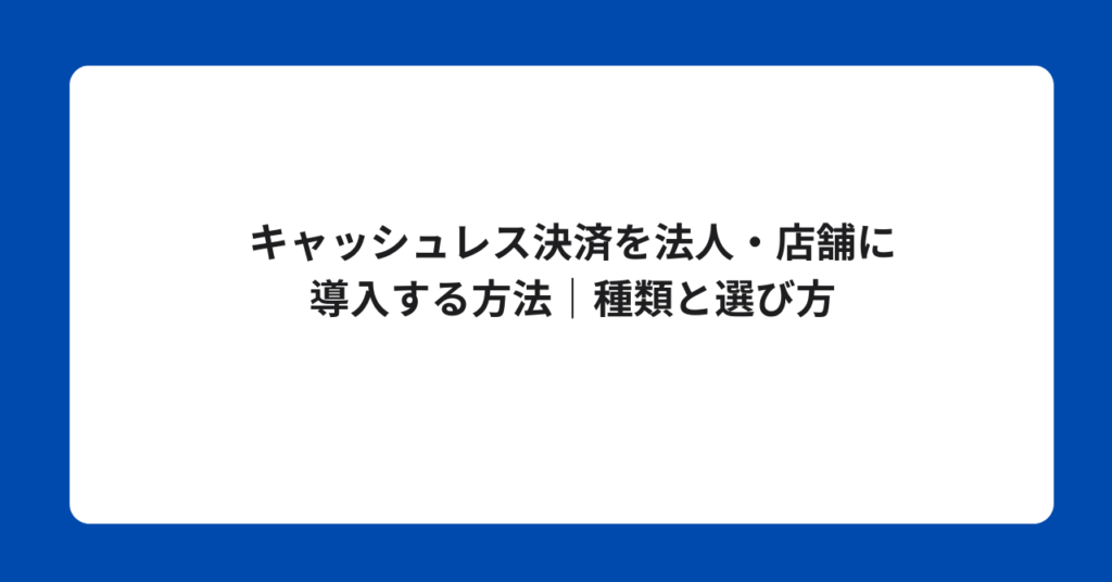 キャッシュレス決済を法人・店舗に導入する方法|種類と選び方の完全ガイド 「キャッシュレス決済を導入したいが、種類が多くてどれを選べばよいかわからない」 クレジ...