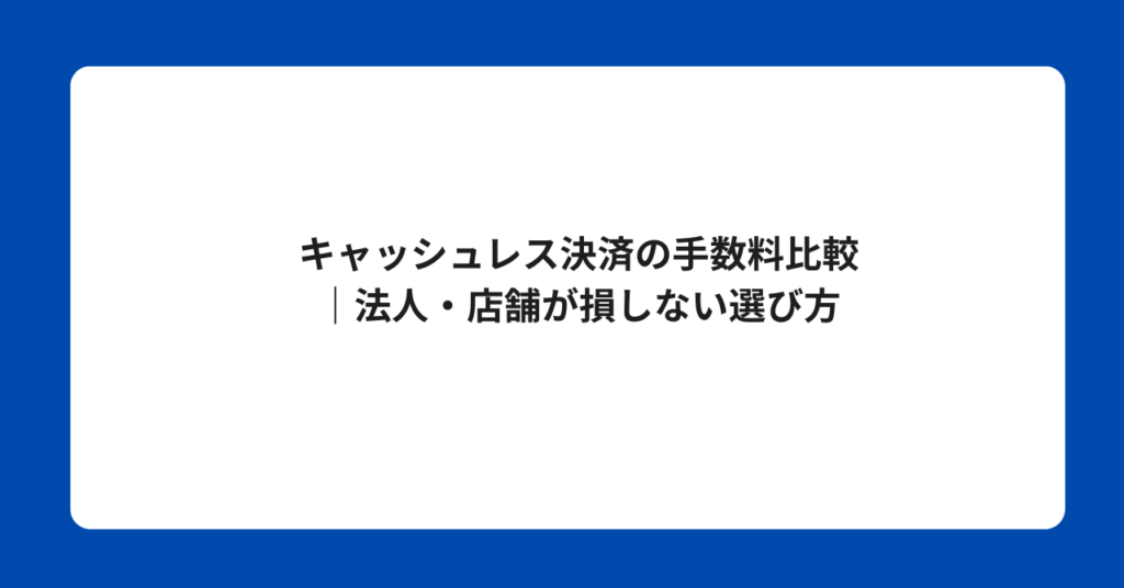 キャッシュレス決済の手数料比較|法人・店舗が年間コストで損しない選び方 キャッシュレス決済を導入する際、最も見落とされがちなのが決済手数料の長期的なコストです... -