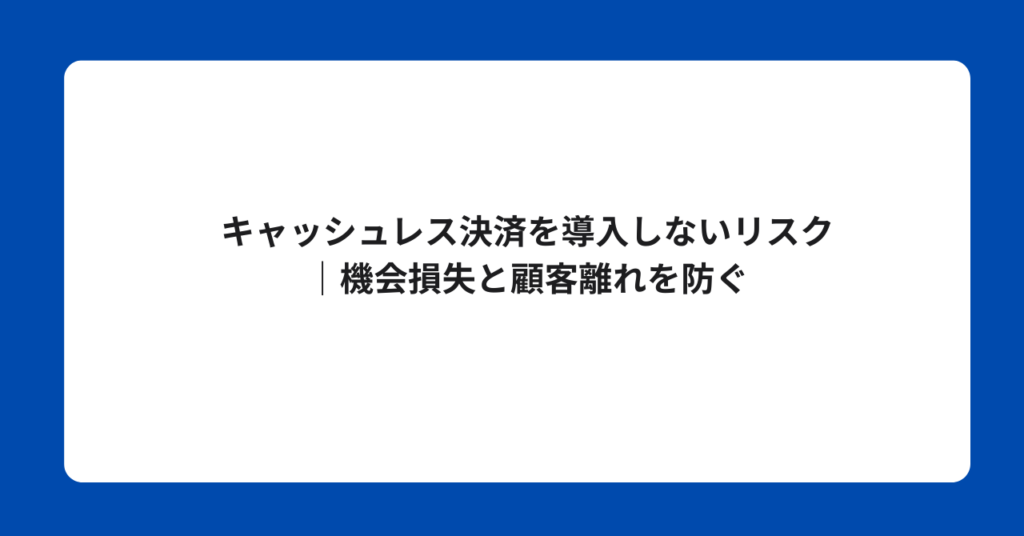 キャッシュレス決済を導入しないリスク|機会損失と顧客離れを今すぐ防ぐ 「うちはずっと現金払いでやってきたから、キャッシュレスは必要ない」 こう考えている法人・... -