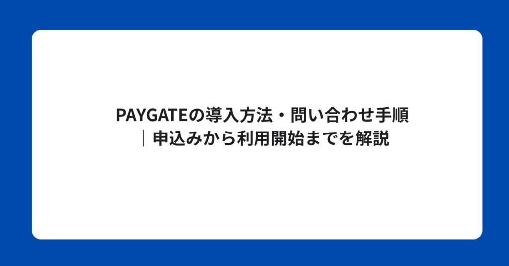 PAYGATEの導入方法・問い合わせ手順|申込みから利用開始までの流れを解説 「PAYGATEに興味があるが、具体的にどうやって導入すればよいかわからない」 この記事では、P... -