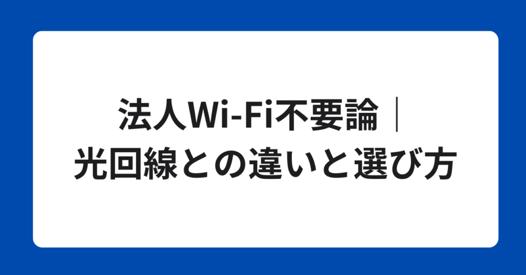 法人Wi-Fi不要論|光回線との違いと選び方