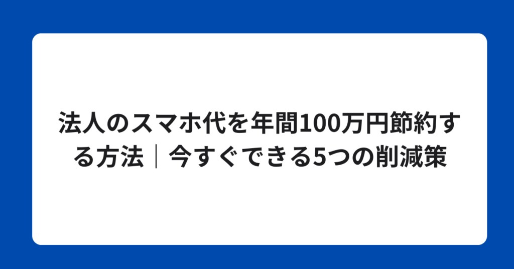 法人のスマホ代を年間100万円節約する方法|今すぐできる5つの削減策