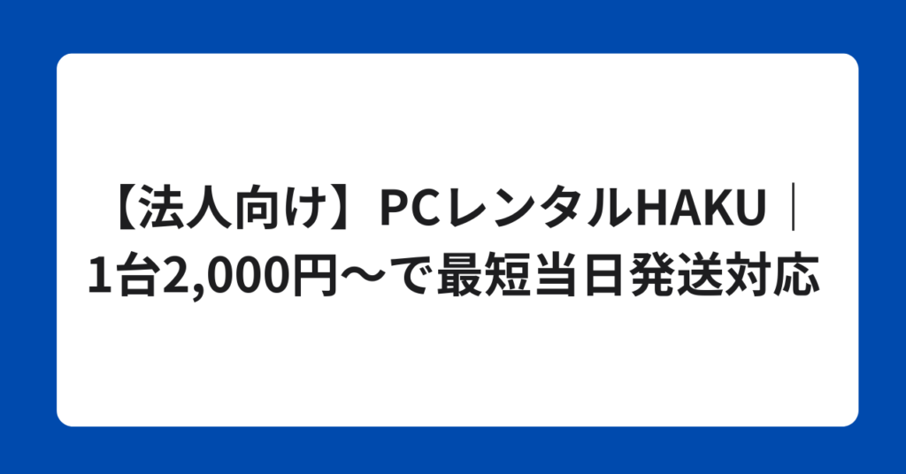 【法人向け】PCレンタルHAKU|1台2,000円〜で最短当日発送対応