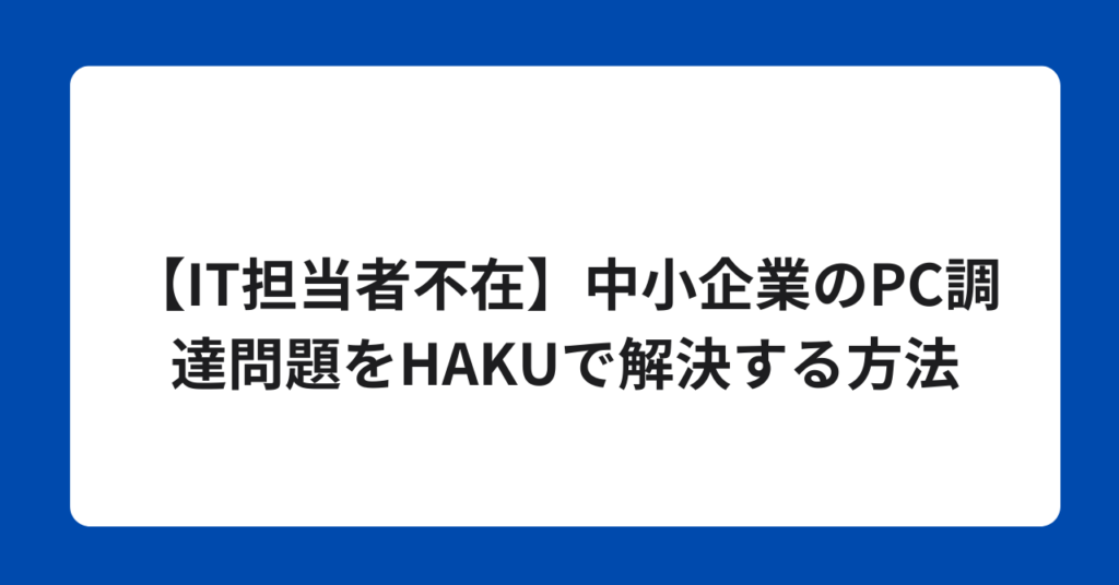 【IT担当者不在】中小企業のPC調達問題をHAKUで解決する方法