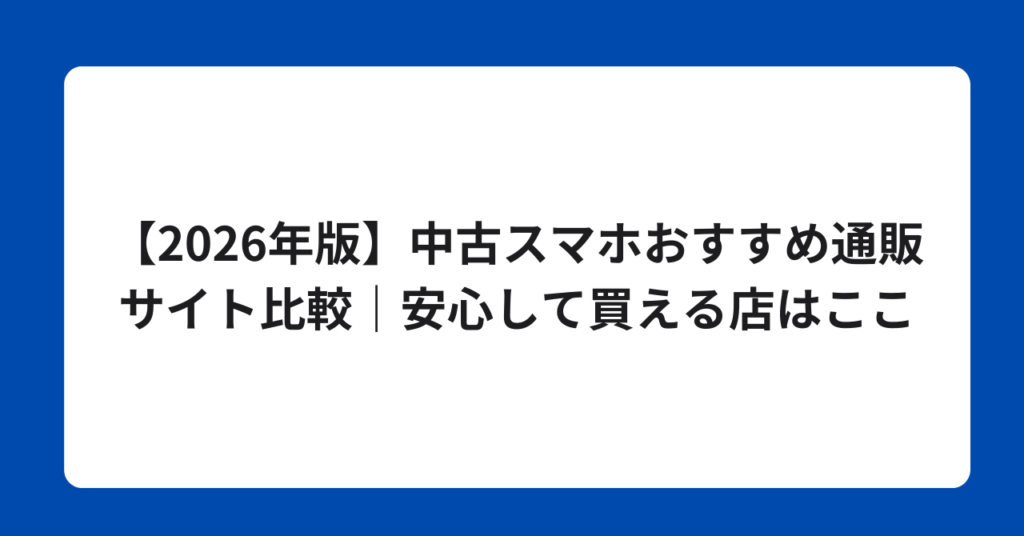 【2026年版】中古スマホおすすめ通販サイト比較|安心して買える店はここ