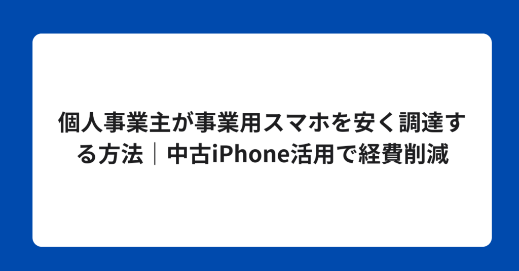 個人事業主が事業用スマホを安く調達する方法|中古iPhone活用で経費削減