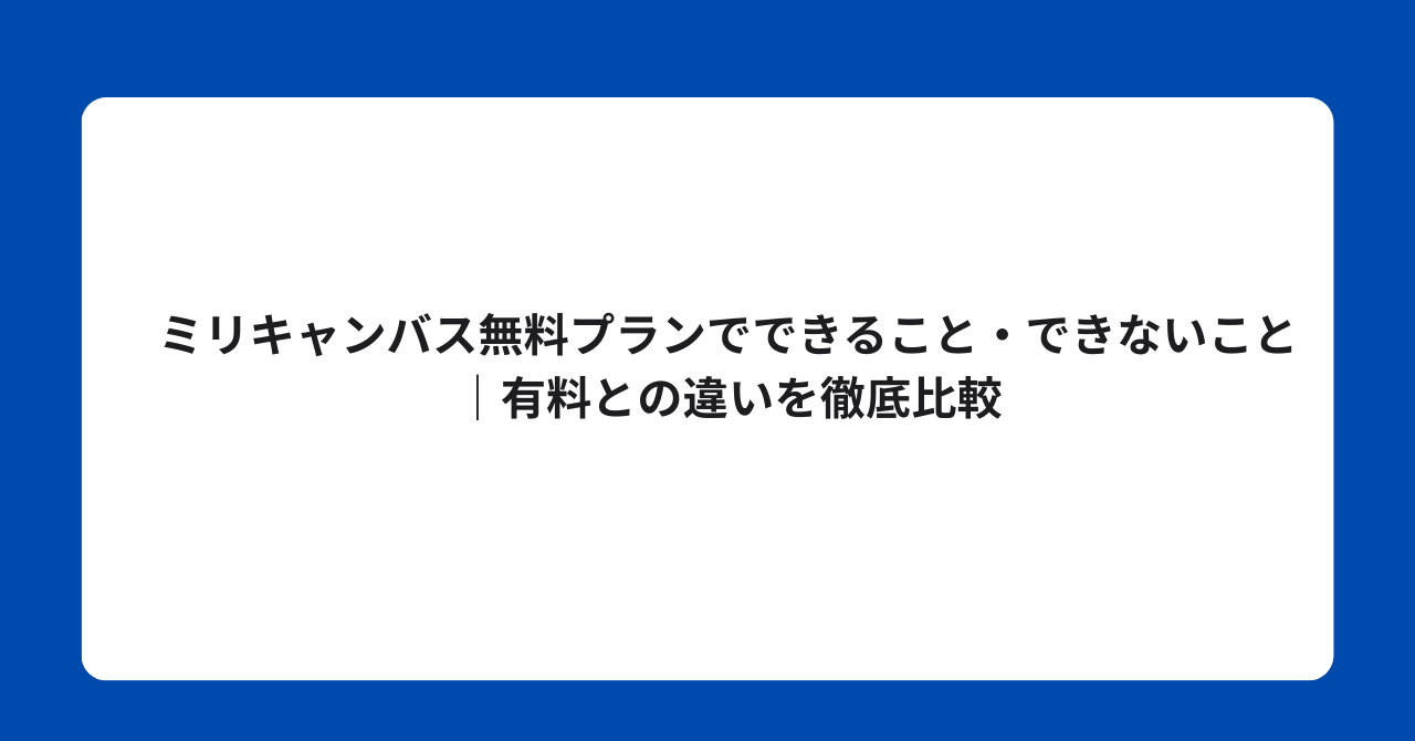 ミリキャンバスを使い始めるにあたって「無料プランで十分か」「有料プランが必要か」を事前に把握しておくと、ツール選択の判断がスムーズになります。
