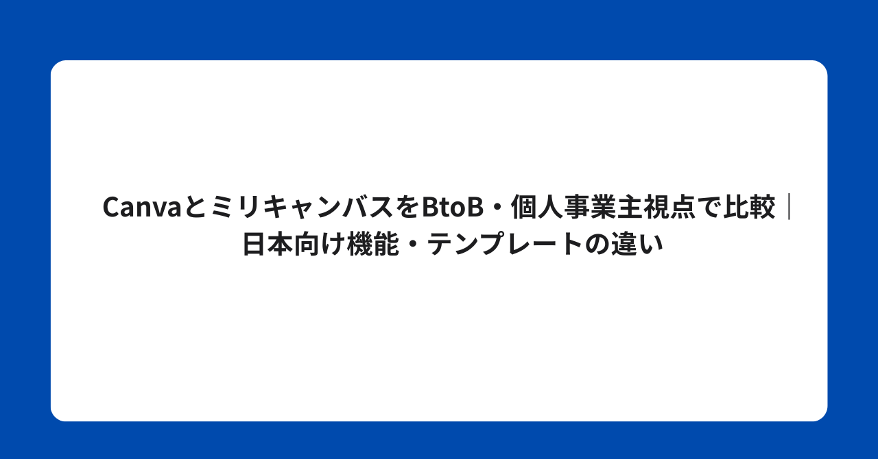 この記事では、個人事業主・フリーランス・小規模事業者の視点でCanvaとミリキャンバスを機能・テンプレート・コスト・日本語対応の観点から比較します。