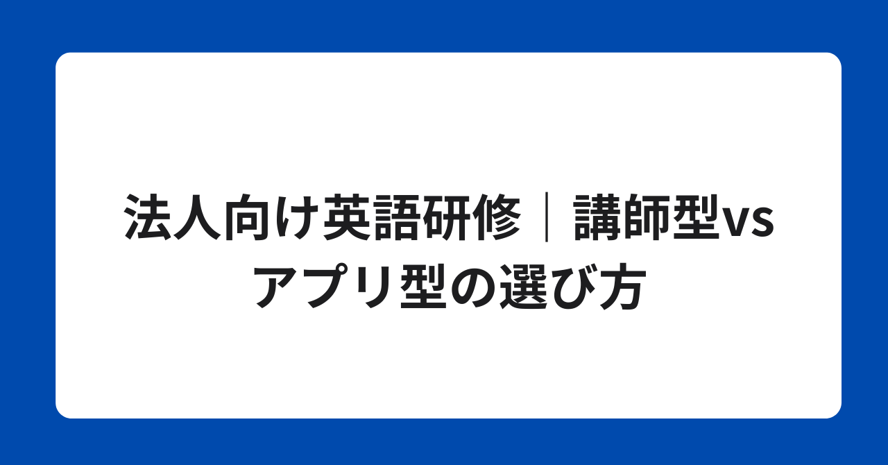 法人向け英語研修|講師型vsアプリ型の選び方