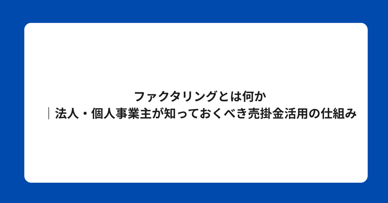 ファクタリングとは何か|法人・個人事業主が知っておくべき売掛金活用の仕組み