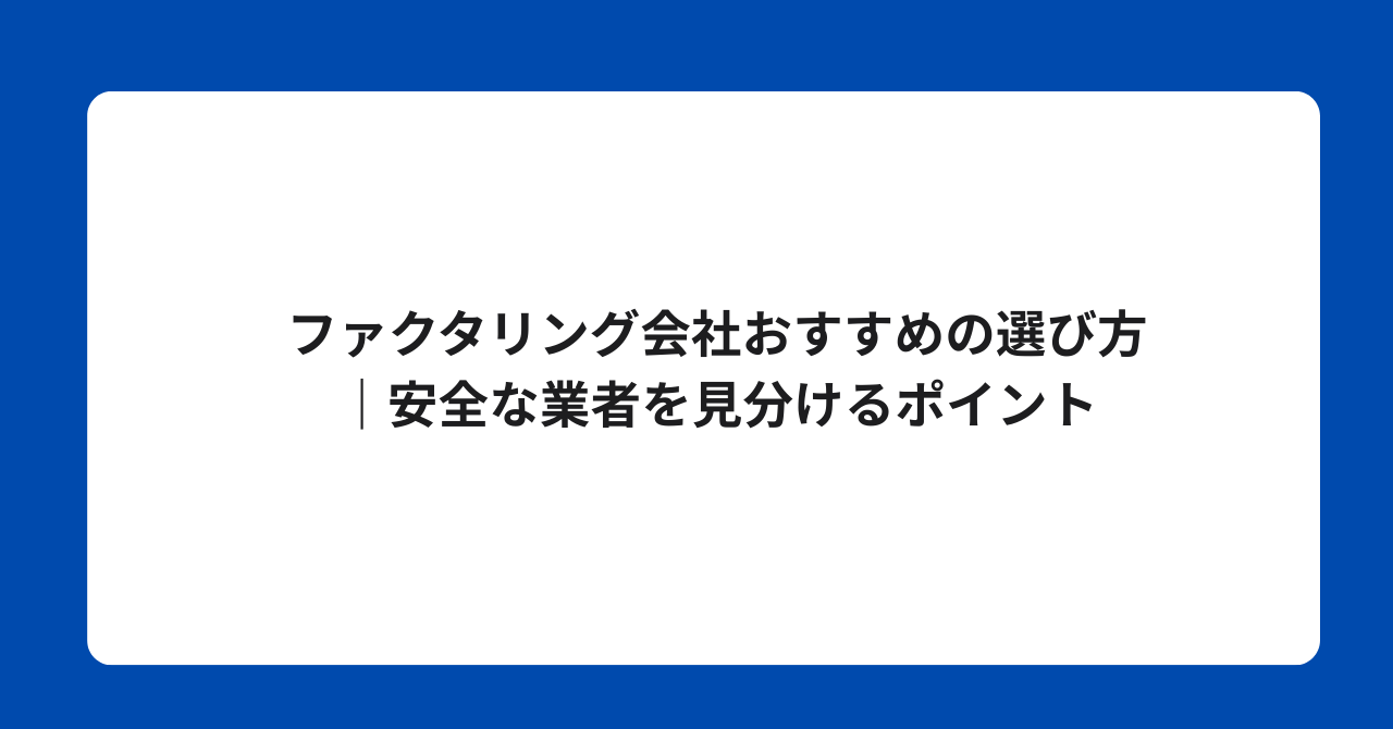 この記事では、安全なファクタリング会社を選ぶためのポイントと、状況別のおすすめサービスを解説します。