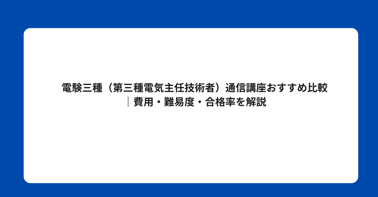 電験三種(第三種電気主任技術者)通信講座おすすめ比較|費用・難易度・合格率を解説