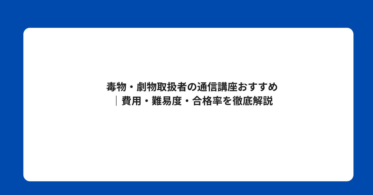 「毒物・劇物取扱者の難易度・合格率・費用の目安を知りたい」