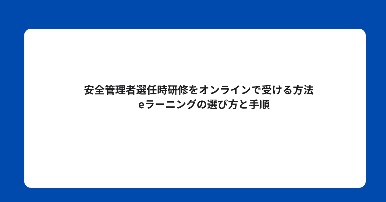 - 法的根拠:労働安全衛生法第10条・厚生労働省通達(安全管理者選任時研修)