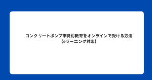 「コンクリートポンプ車の特別教育って、どこで受ければいいかわからない」 「建設現場でコンクリートポンプ車を操作しているが、受講義務があるかどうか確認したい」 「eラーニングで学科だけでも修了できるなら、手続きや費用を詳しく知りたい」