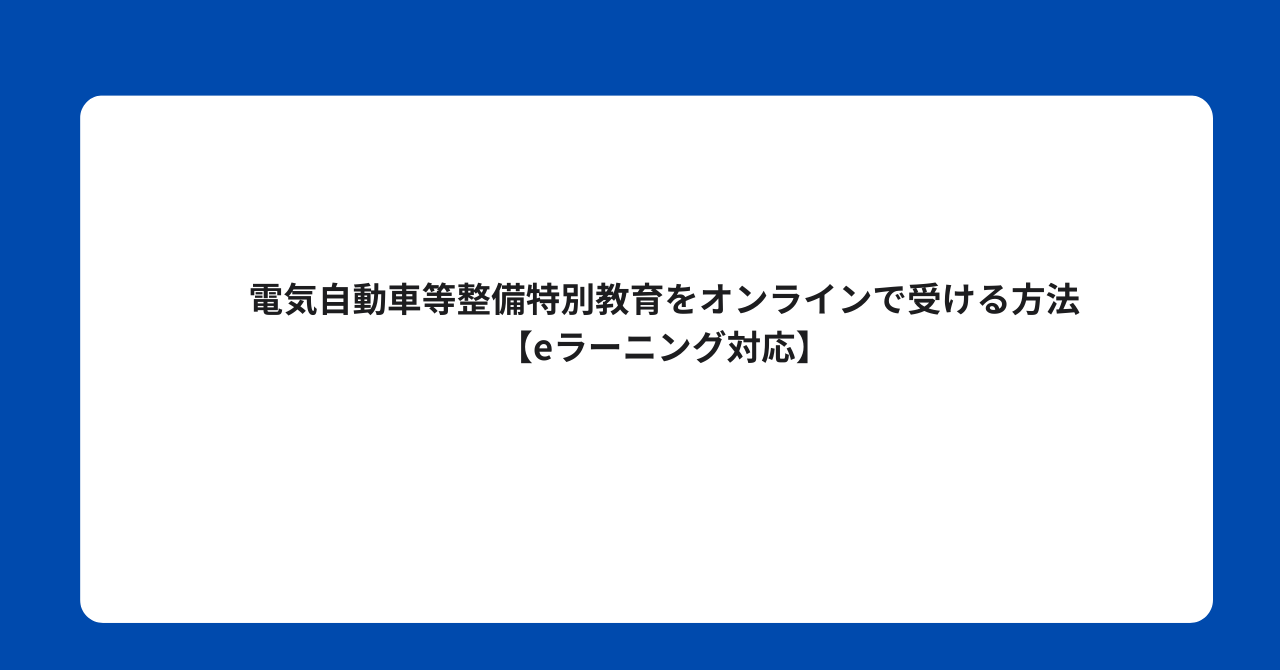 電気自動車等の整備の業務に係る特別教育の学科6時間はeラーニングで受講可能です。厚生労働省の通達に基づき、学科部分はインターネットを利用した映像・テキスト形式での受講が認められています。