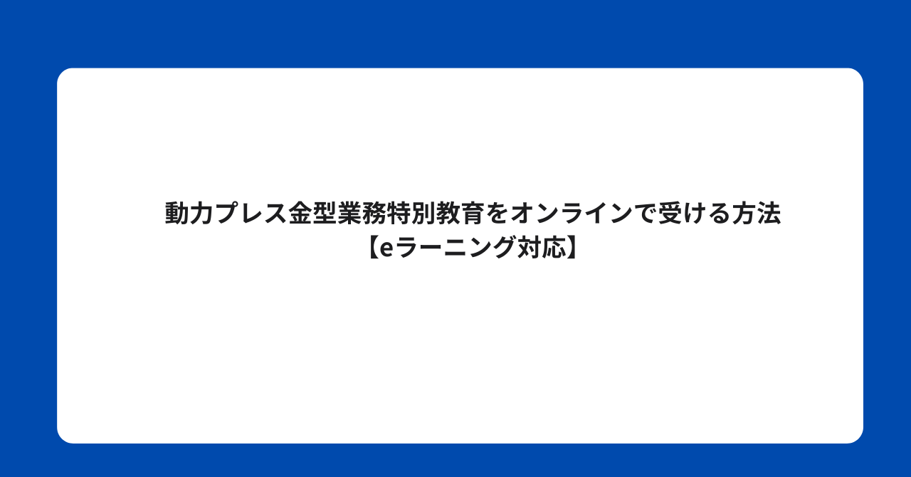 動力プレスの金型等の取付け・取外し等の業務に係る特別教育の学科6時間はeラーニングで受講可能です。厚生労働省の通達に基づき、学科部分はインターネットを利用した映像・テキスト形式での受講が認められています。