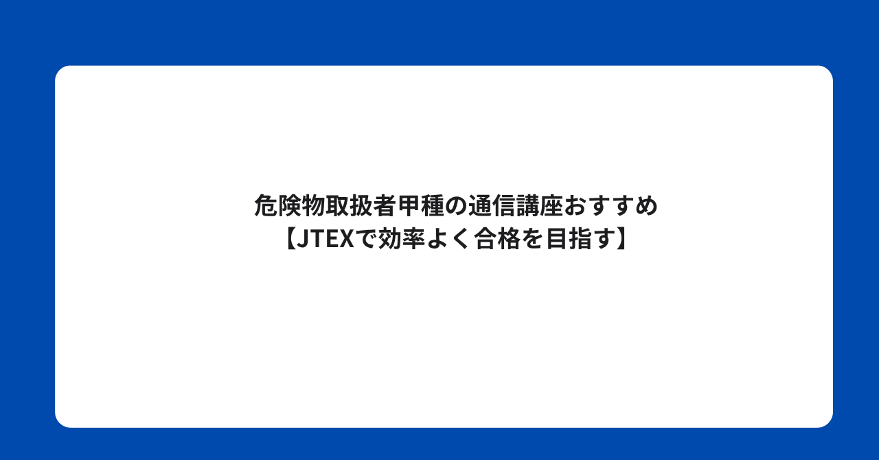 JTEXは、技術系・化学系資格に特化した職業訓練法人の通信講座です。危険物取扱者・化学系国家資格を多数カバーしており、理論問題の多い甲種試験の攻略に実績があります。