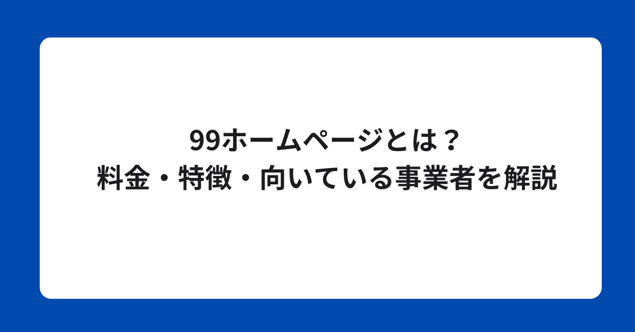99ホームページ(99HP)は、初期費用0円・月額9,900円からプロが制作・運用サポートしてくれる、個人・小規模企業向けの格安HP制作サービスです。