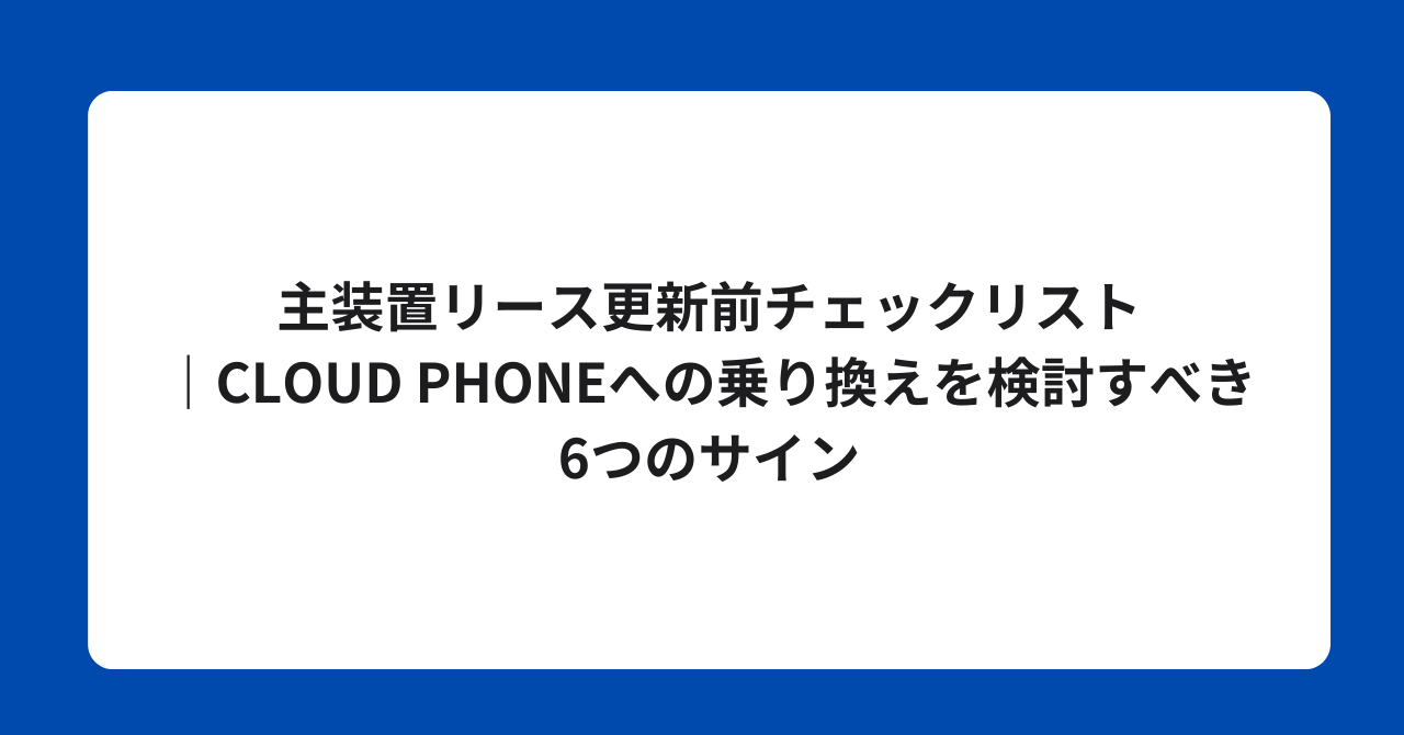 このチェックリストで、今の主装置を継続すべきか、クラウドPBXへ乗り換えるべきかを5分で確認してください。