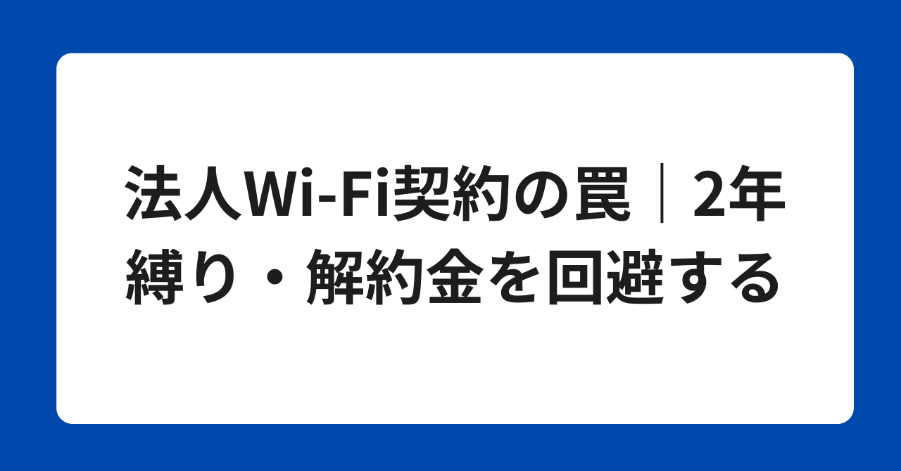 法人Wi-Fi契約の罠|2年縛り・解約金を回避する