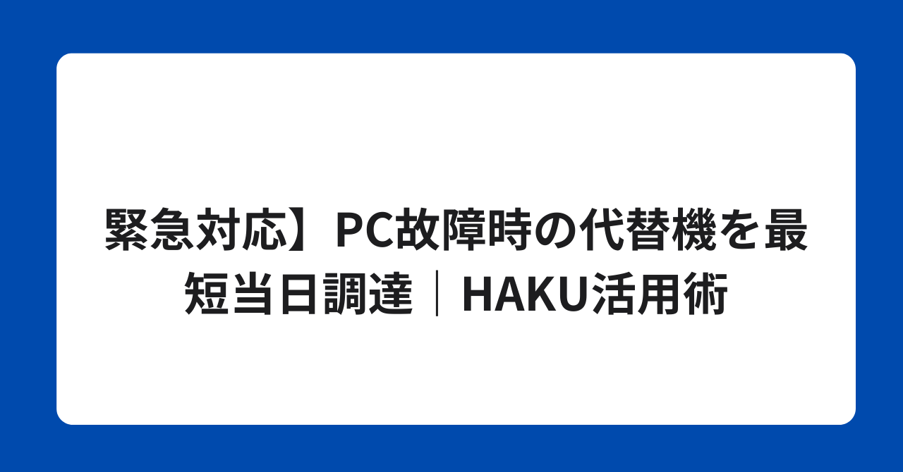 最短当日発送で代替機を調達できるHAKUなら、PC故障による業務停止を最小限に抑えられます。