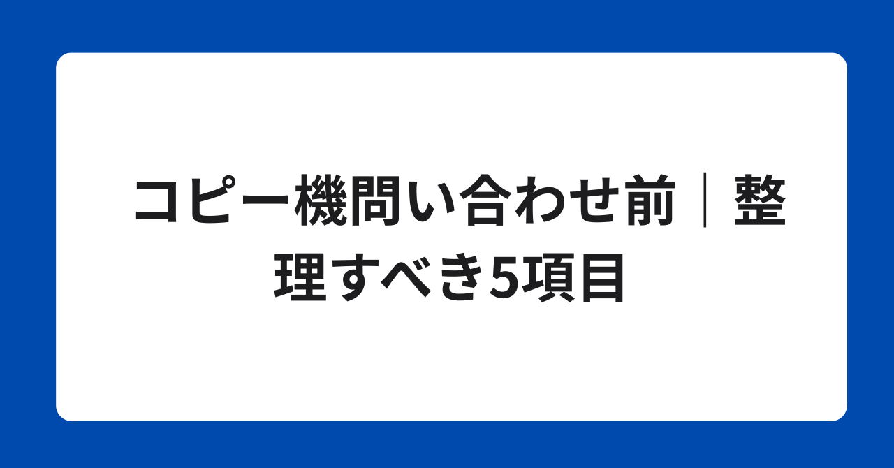 「コピー機の見積もりを取ろうと思うが、何を聞けばいいか分からない」