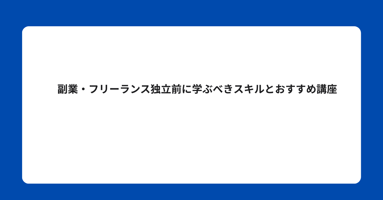 この記事では、フリーランス独立・副業開始前に習得しておくべきスキルと、効率よく学べる講座を紹介します。