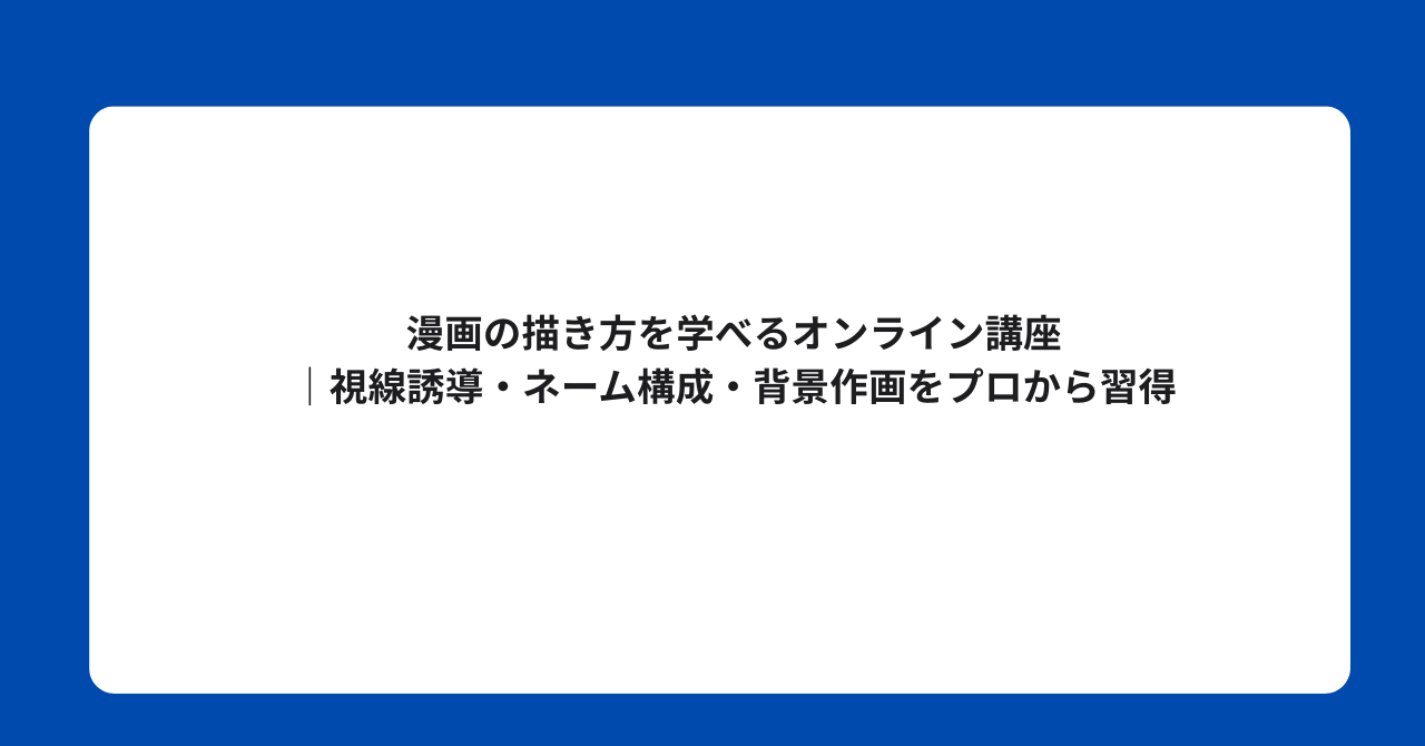「読みやすい漫画」を作るために最も重要な視線誘導に特化した講座です。ネーム・コマ割り・業界知識まで漫画家としての実務を体系的に学べます。
