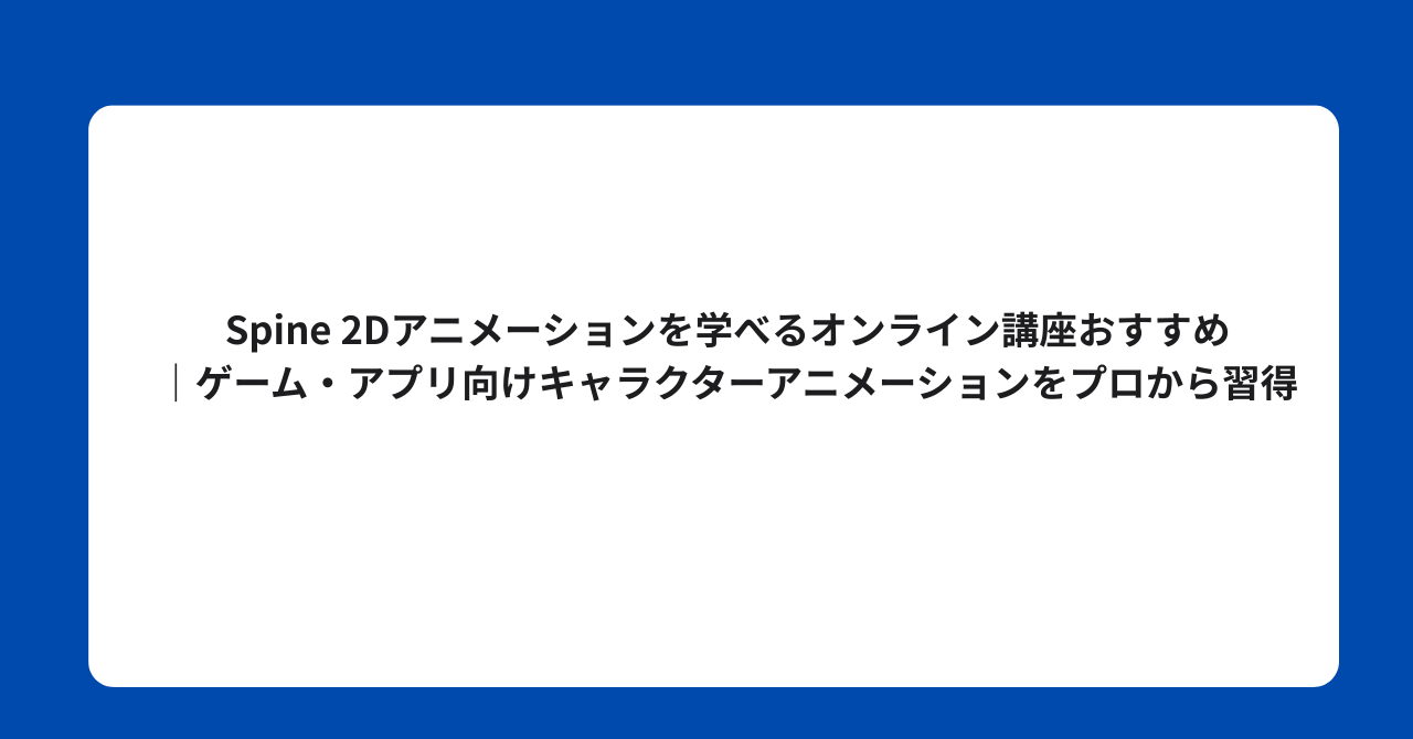 - Spine 2Dアニメーションはゲーム・アプリ開発の現場で需要が高い実践スキル