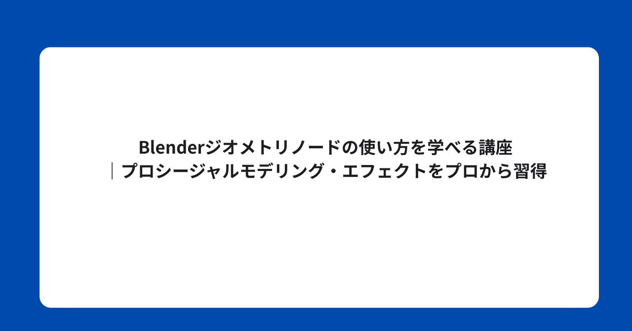 Blenderのジオメトリノードをゼロから体系的に学べる実践講座です。